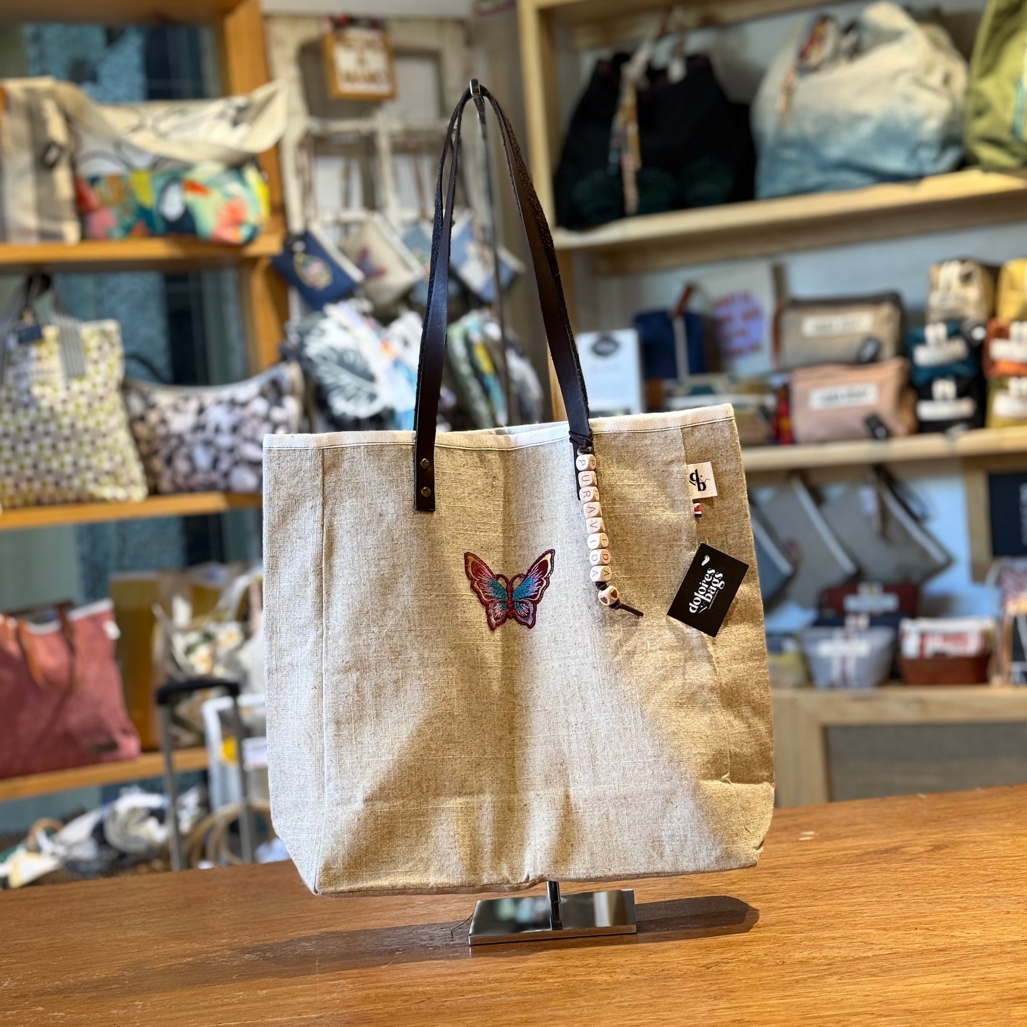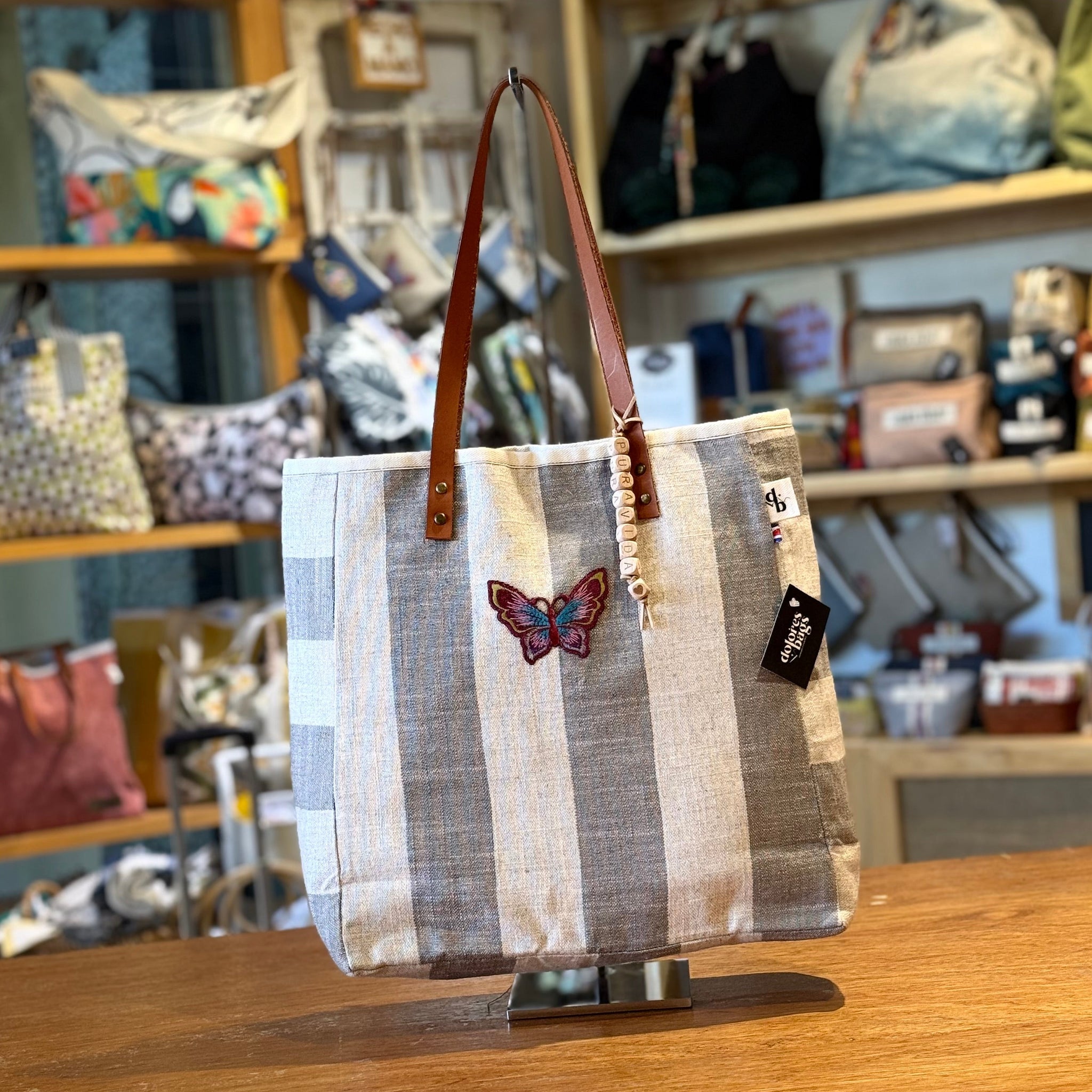Si te encantó el Tote Dominga, esta version mas compacta es la indicada para usar todos los días. Su diseño sencillo se realza con parches vintage, y los tonos neutros brillan con el colgante de madera Pura Vida y las asas de eco cuero, que le dan el toque final perfecto. Te cabe una laptop, cuadernos, una botella y lo imprescindible para usarlo sin parar.