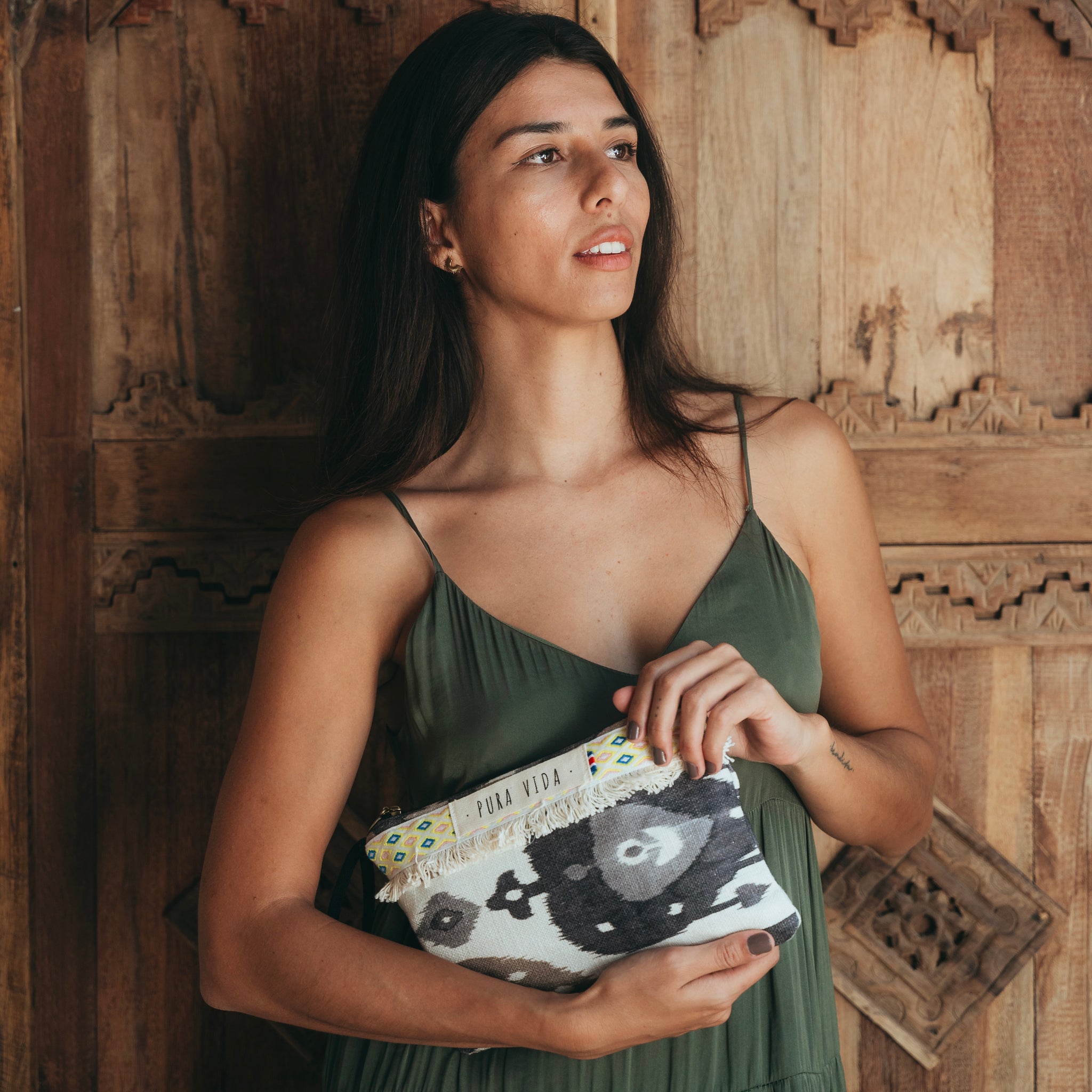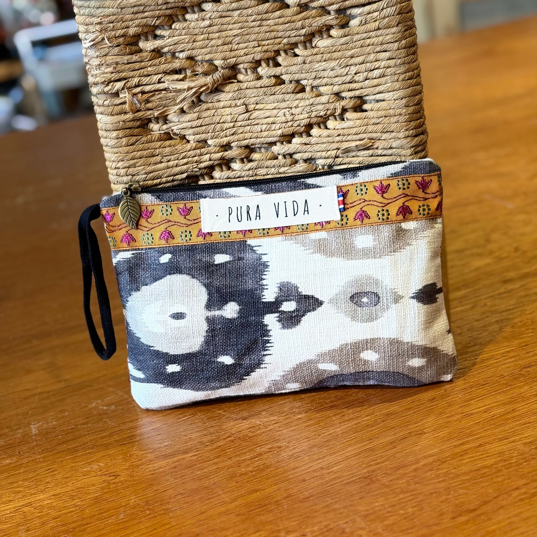 Handbag in printed fabrics, plain waterproof lining and Pura Vida cotton label