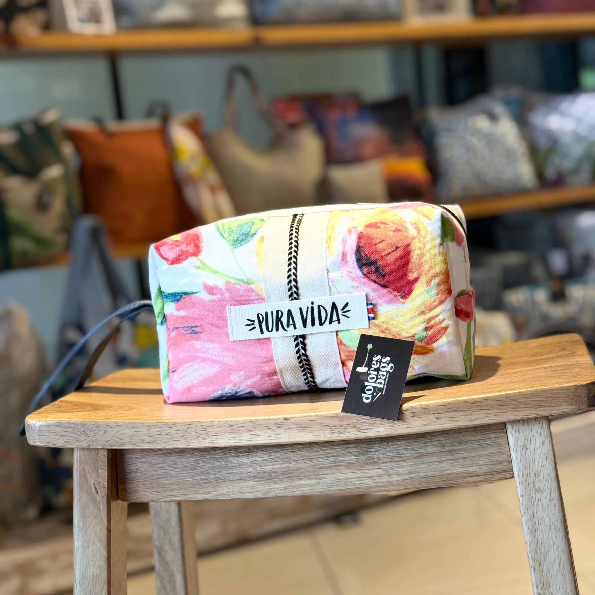 Indi es una cosmetiquera impermeable y resistente ideal para tus viajes. Viene con una manija para que lleves como si fuese una bolsita de mano. La podés encontrar en colores vibrantes y neutros, siempre con un flequito a los lados que la hace única. ¿Lista para elegir?