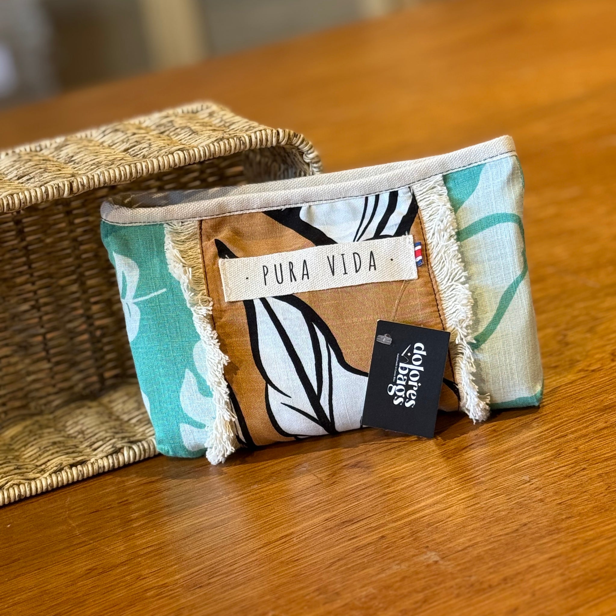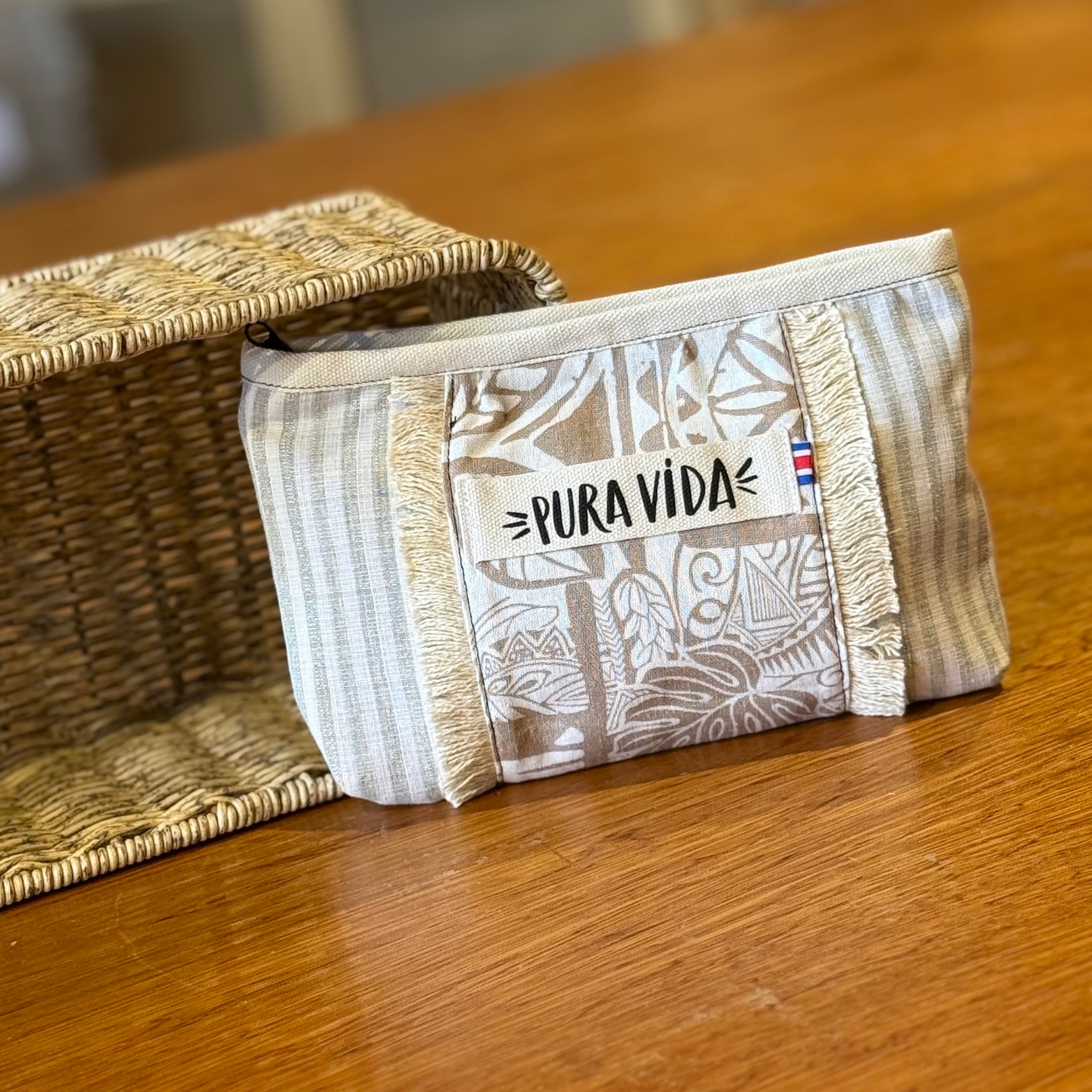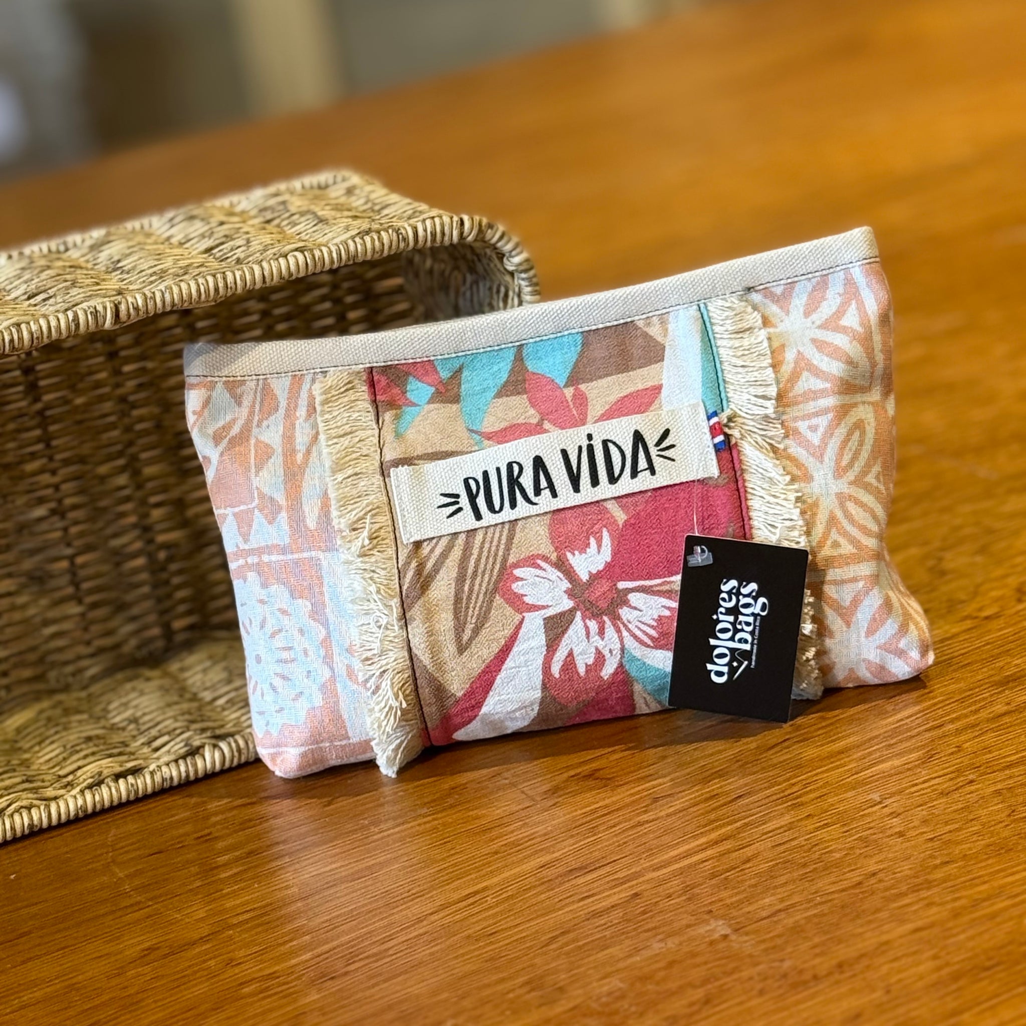 Bolsito tipo cartuchera en telas estampadas, suaves y livianas, cada combinación es única! Elegís tu favorita según el diseño de la tela del centro. Tiene forro liso impermeable y etiqueta de algodón Pura Vida.