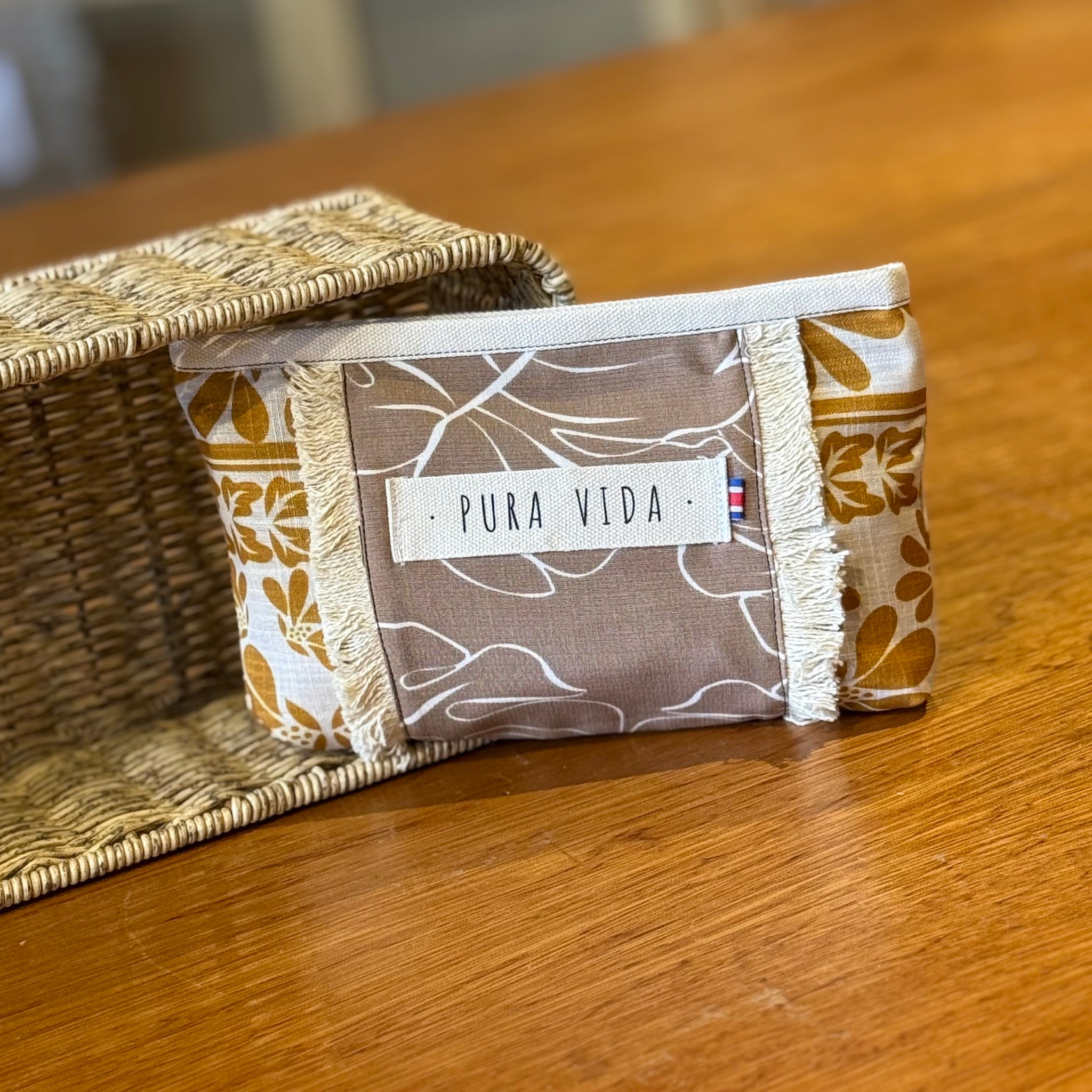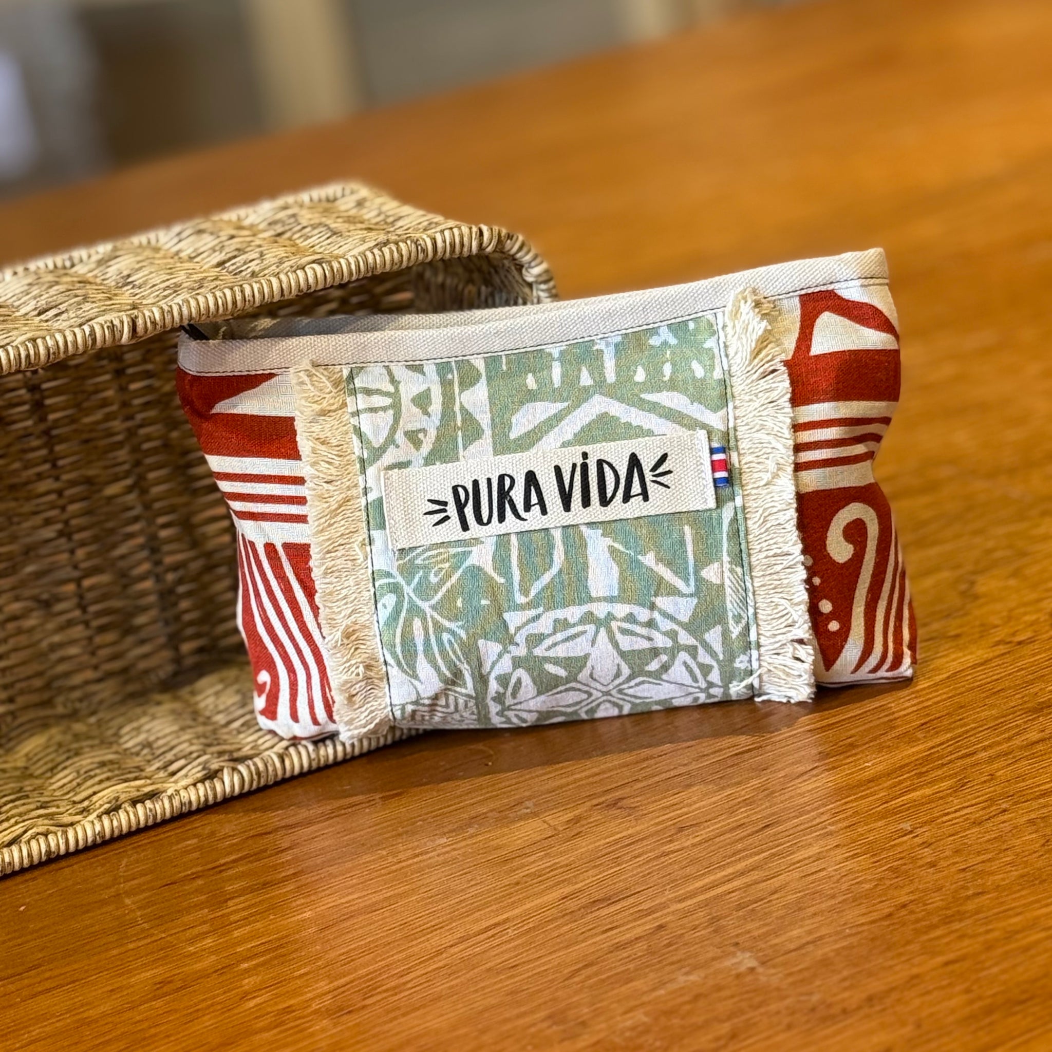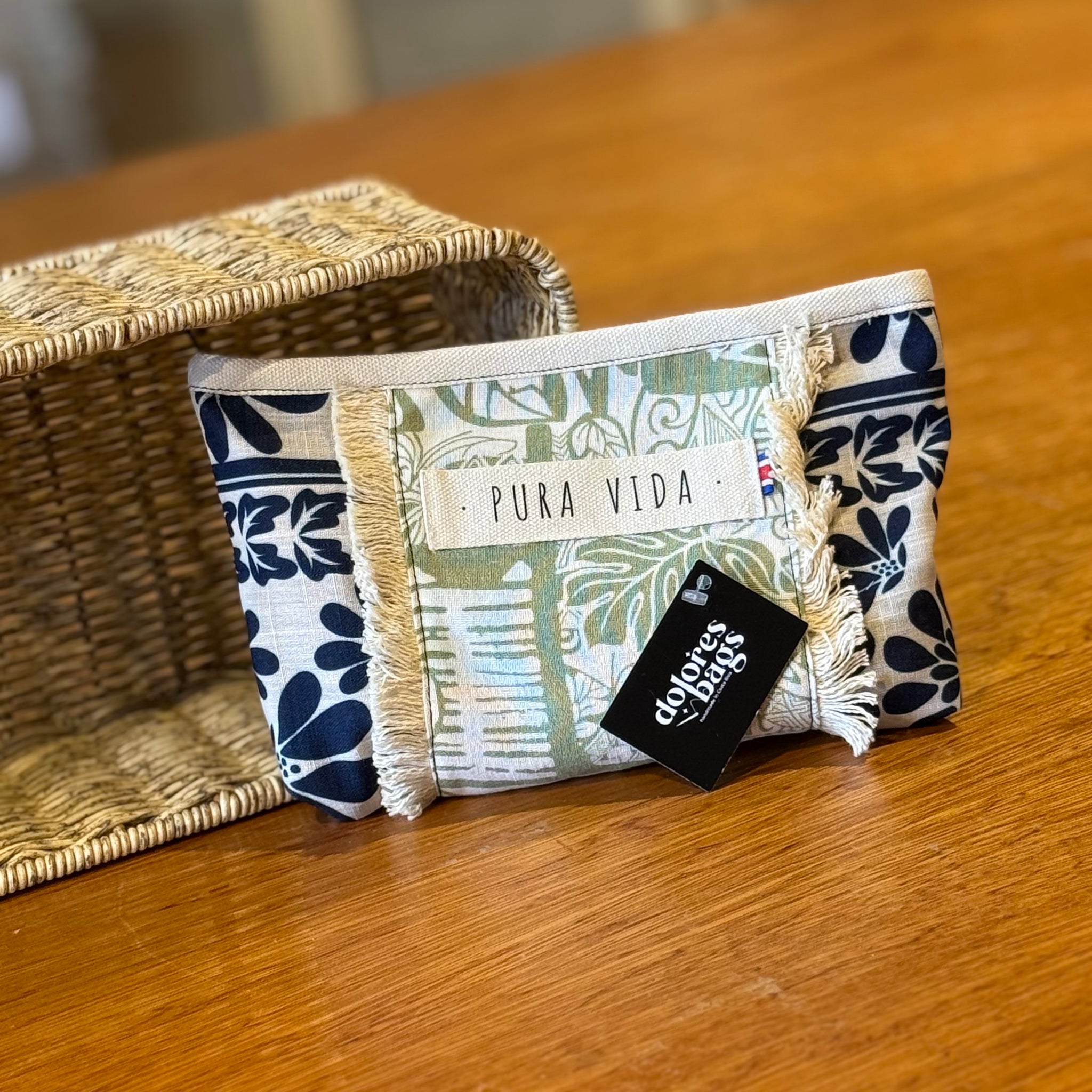 Bolsito tipo cartuchera en telas estampadas, suaves y livianas, cada combinación es única! Elegís tu favorita según el diseño de la tela del centro. Tiene forro liso impermeable y etiqueta de algodón Pura Vida.