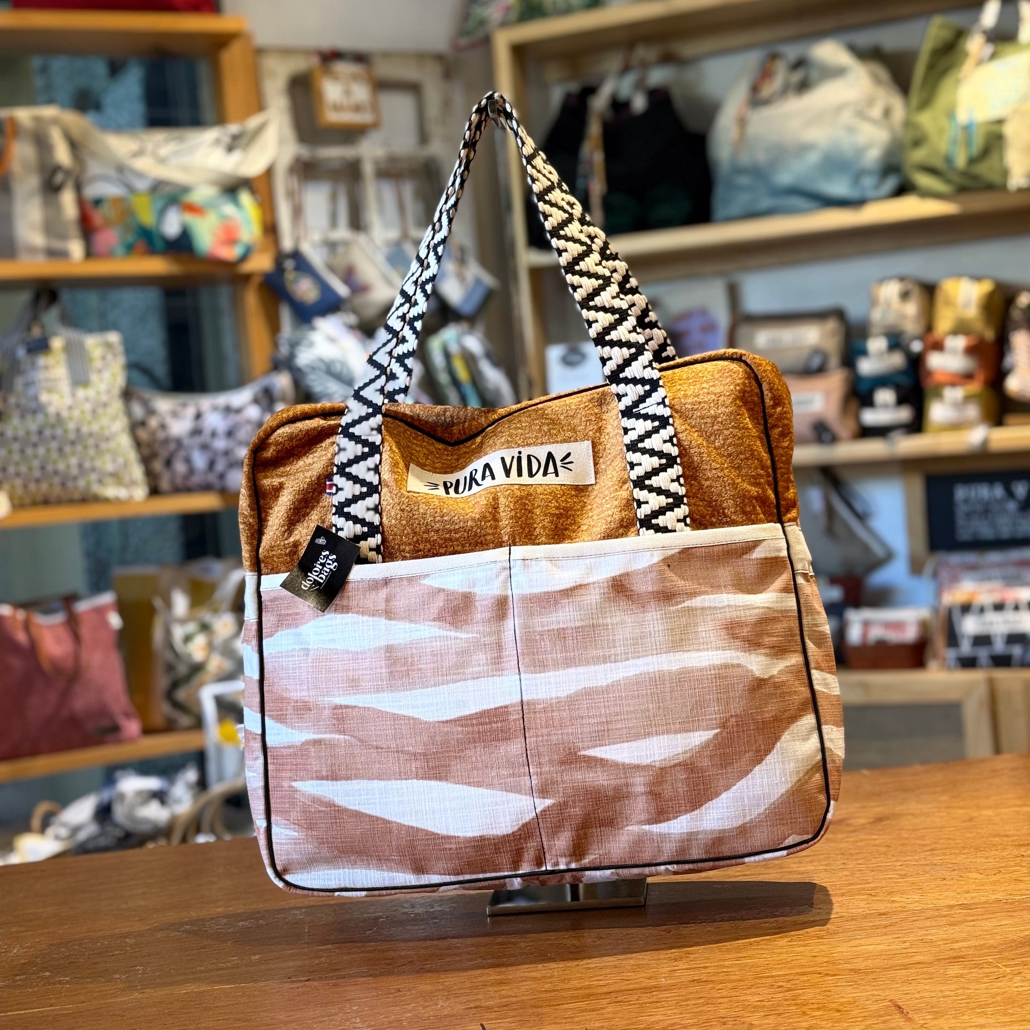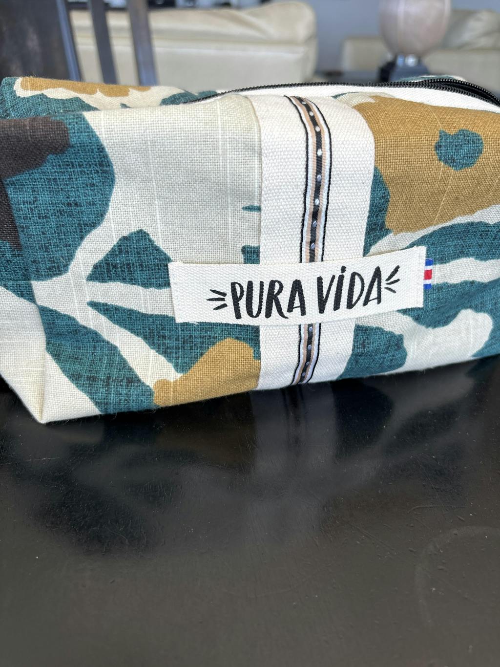 El Bolso Jeny es un equipaje de mano cómodo y práctico para llevar contigo en el avión. Sus medidas permitidas en todas las aerolíneas lo hacen perfecto para tu carry-on y subirlo al avión. Cuenta con el aplique necesario para ajustarlo a tu maleta, tiene cuatro bolsillos: dos con zipper y dos sin zipper. Su forro es de algodón negro, la base reforzada, y sus dos manijas de algodón. La etiqueta PURA VIDA te recordara a Costa Rica!